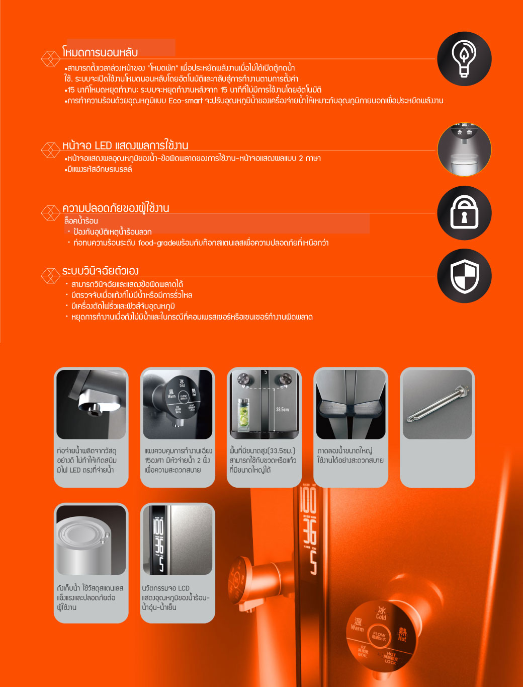 - ตู้มีระบบล็อคน้ำร้อน ป้องกันอุบัติเหตุน้ำร้อนลวก