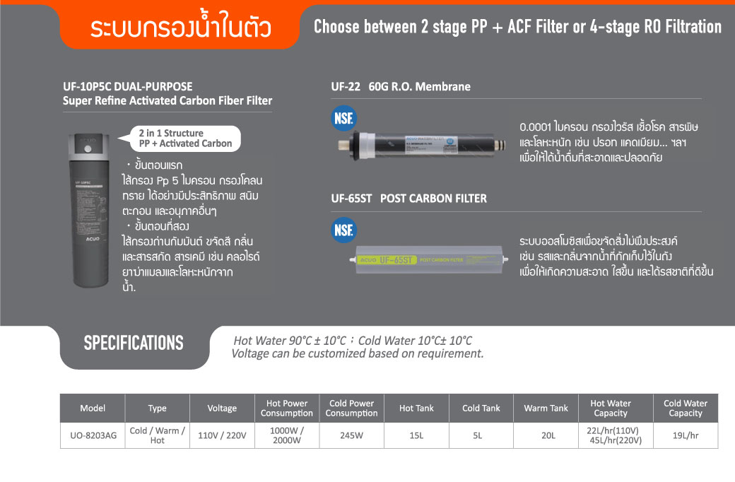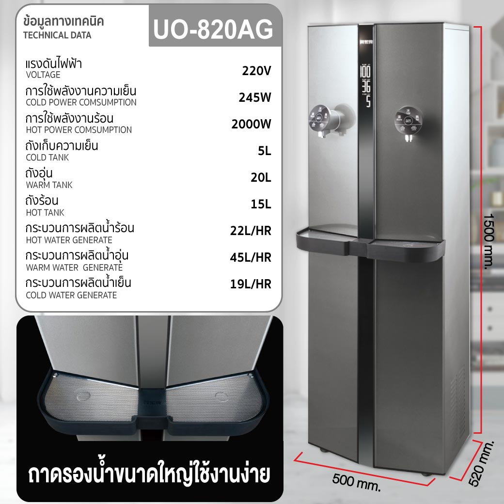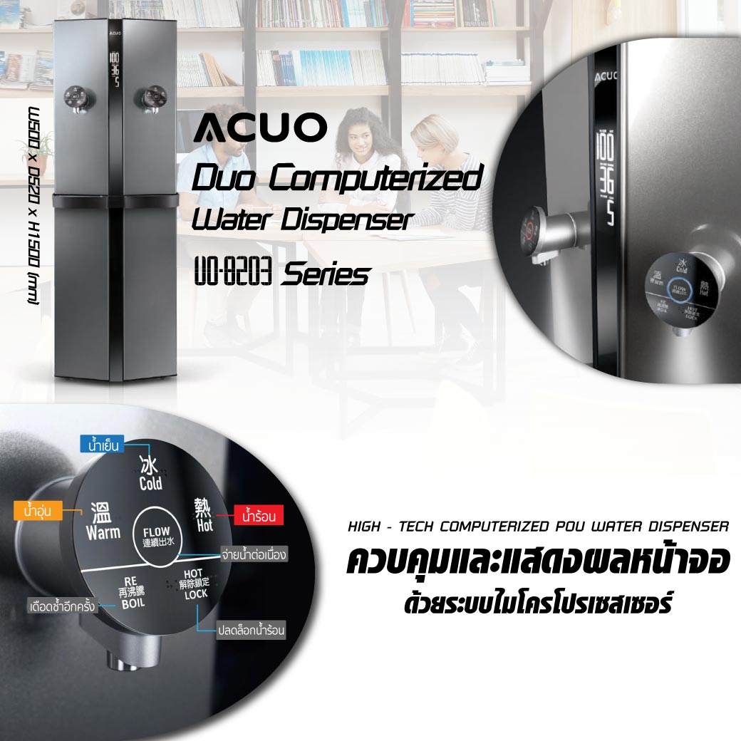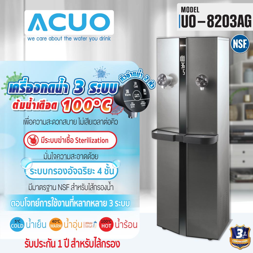 เครื่องทำน้ำร้อน น้ำอุ่น น้ำเย็น ACUO รุ่น UO-8203AG