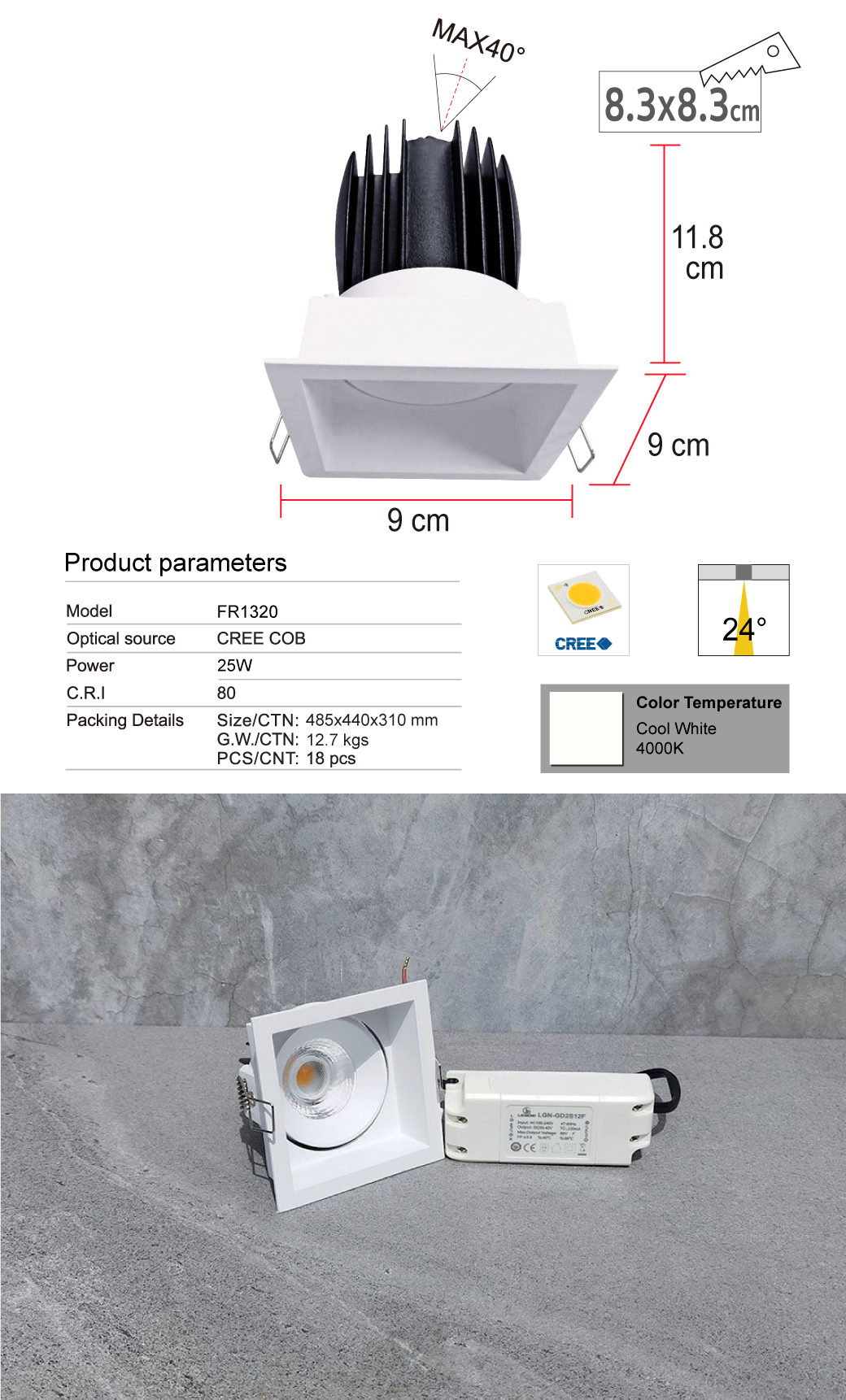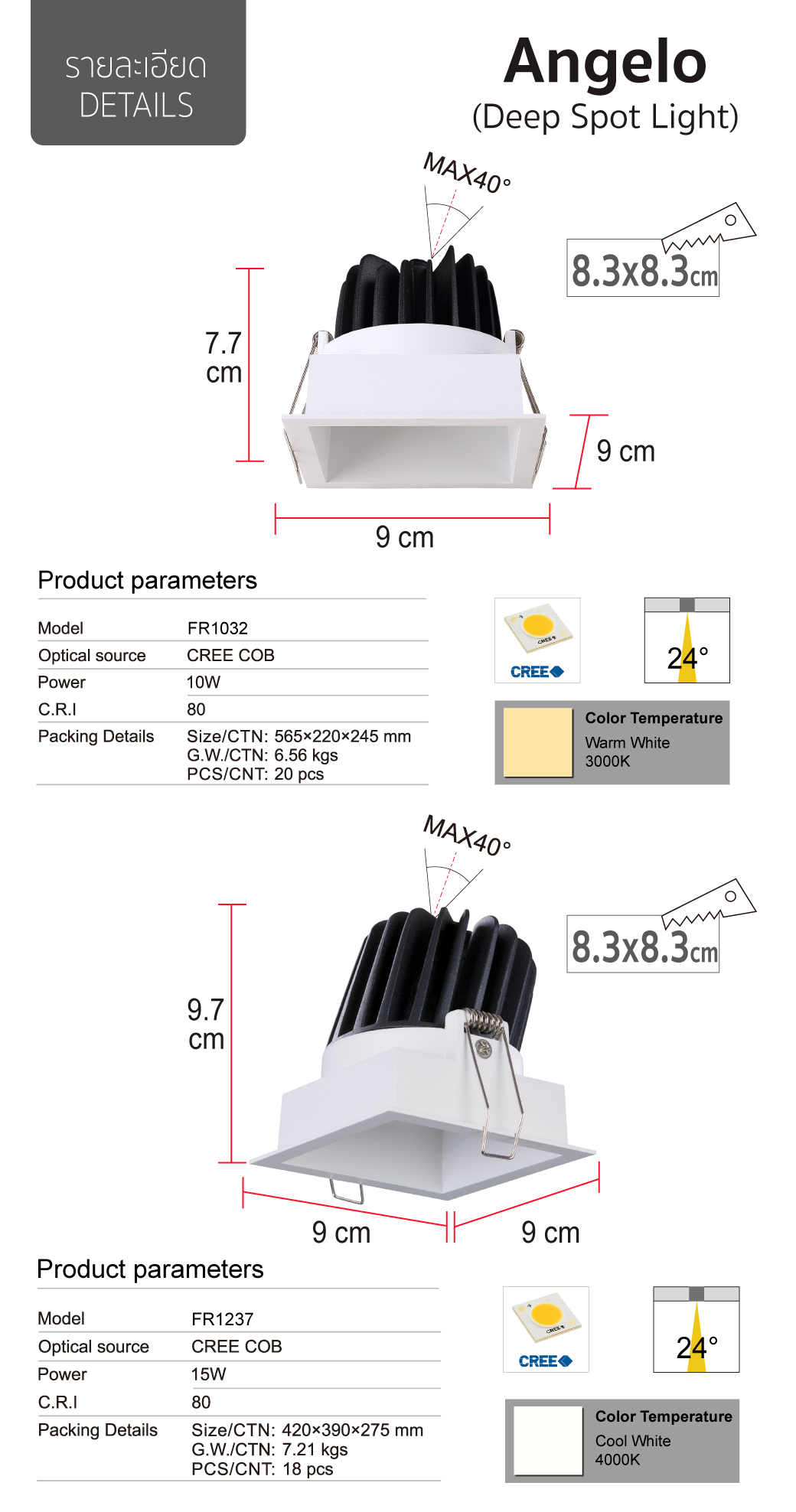 | ระยะเจาะฝ้า (Ø) (Cut hole) | (Ø) 83 x 83 mm |