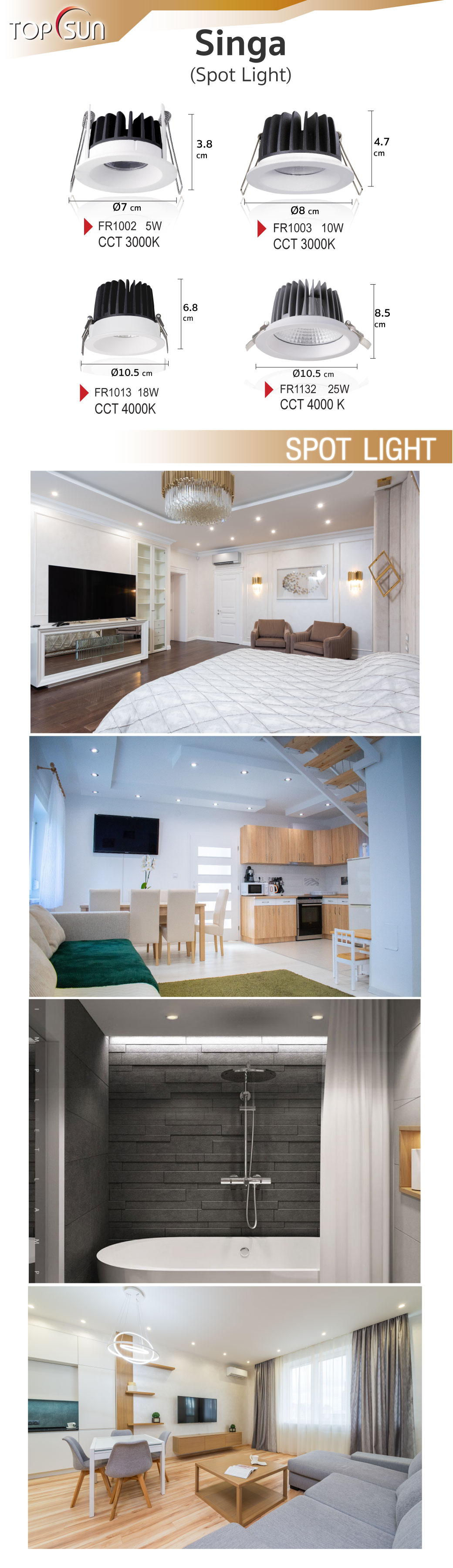 LED Recessed Down Light Round Type Model FR1013 TOPSUN