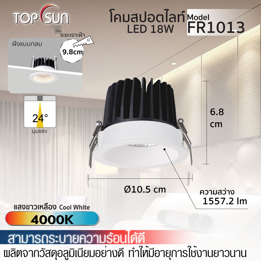 โคมดาวน์ไลท์ LED 18W ฝังแบบกลม รุ่น FR1013 TOPSUN