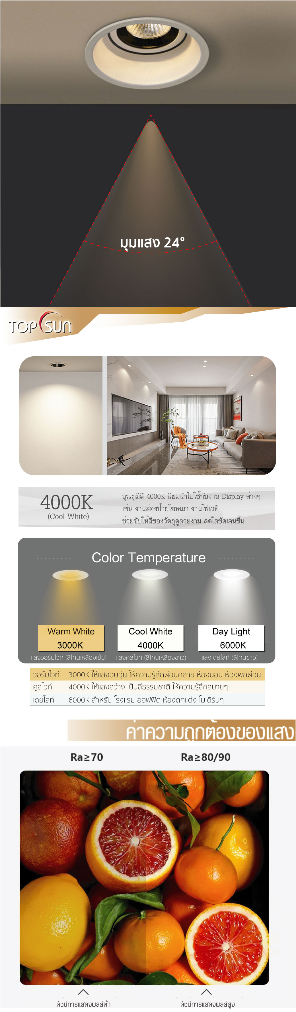 - ค่าดัชนีความถูกต้องของสี / C.R.I : 80