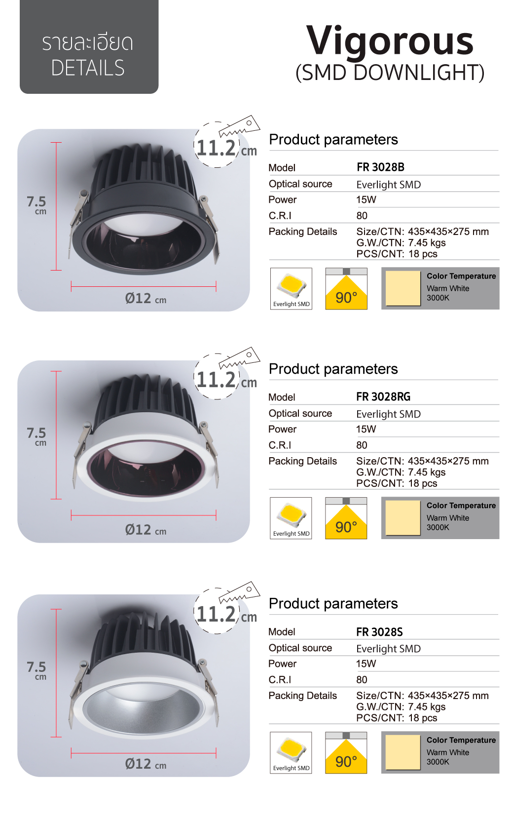 โคมดาวน์ไลท์ LED 15W ฝังแบบกลมรุ่น FR3028RG