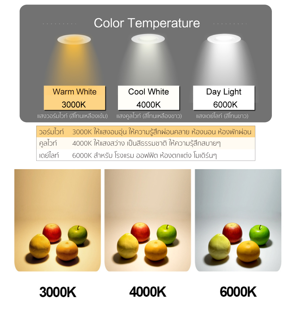 | ค่าอุณภูมิของสี (CCT) | 3000K |