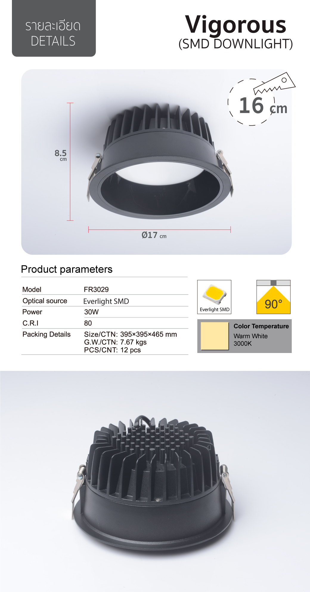 • แหล่งกำเนิดแสง / Optical source : EVERLIGHT SMD