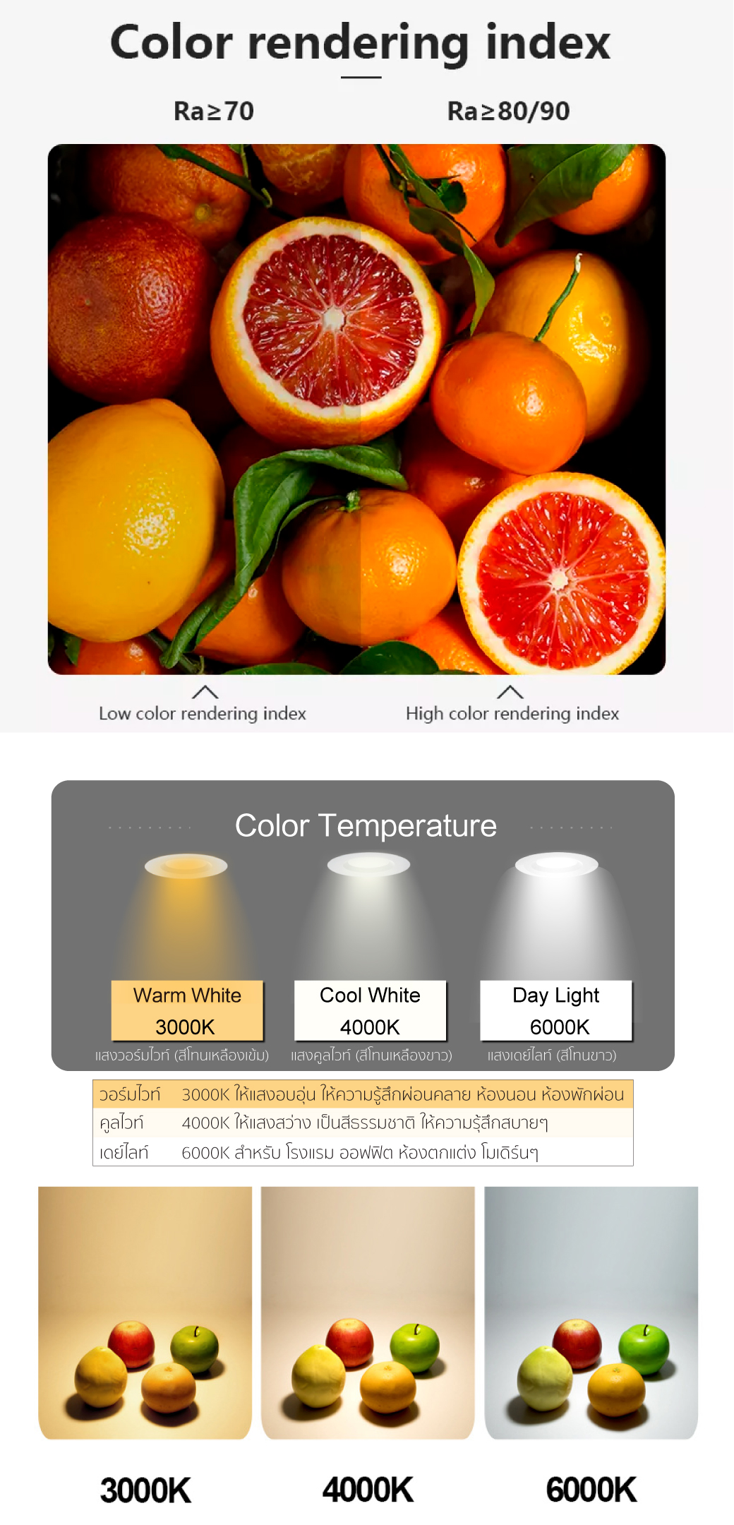 • ค่าดัชนีความถูกต้องของสี / C.R.I : 80