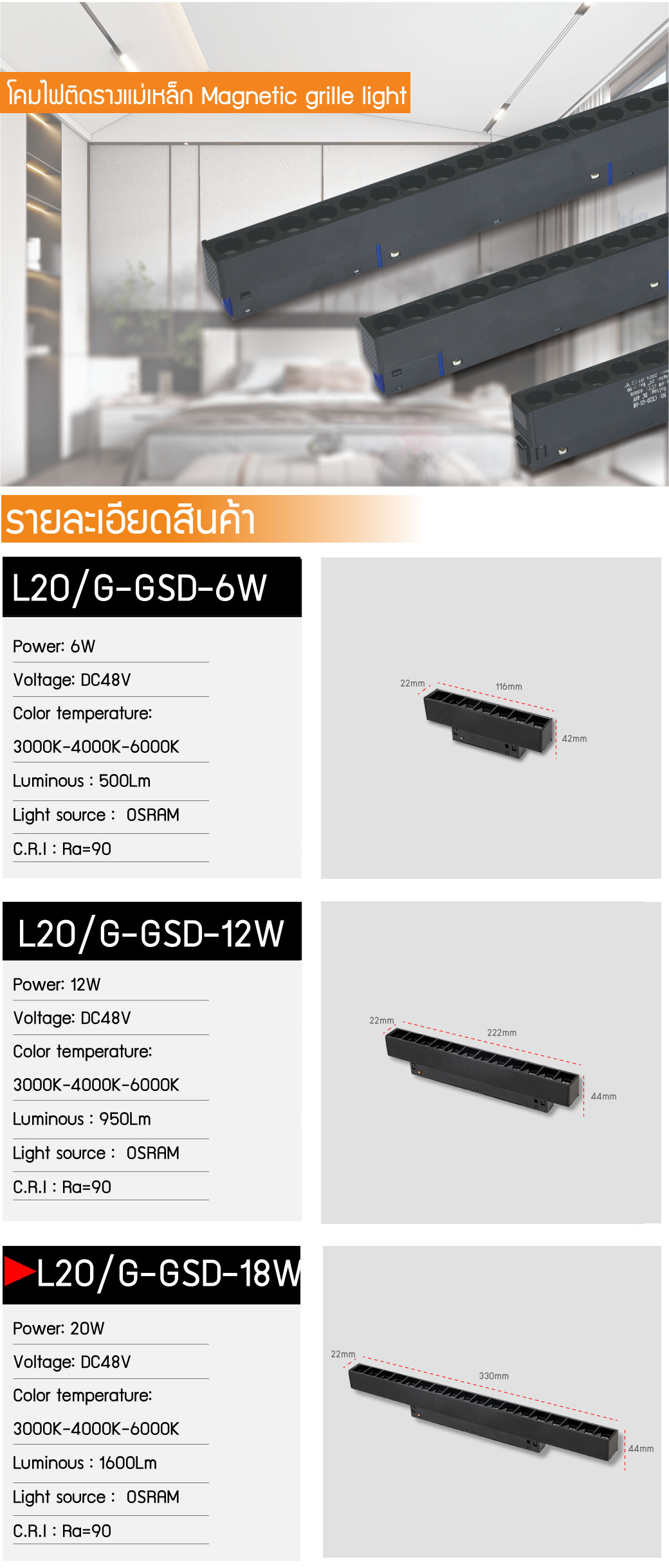 โคมไฟติดรางแม่เหล็ก Magnetic grille light รุ่น L20/G-GSD-18W