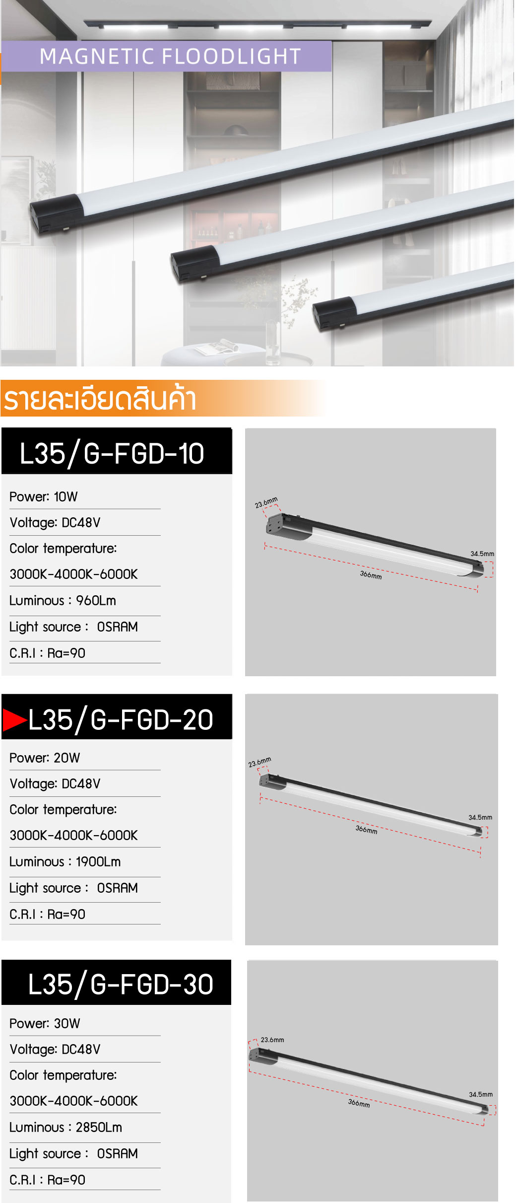 โคมไฟติดรางแม่เหล็ก Magnetic Floodlight รุ่น L35/G-FGD-20
