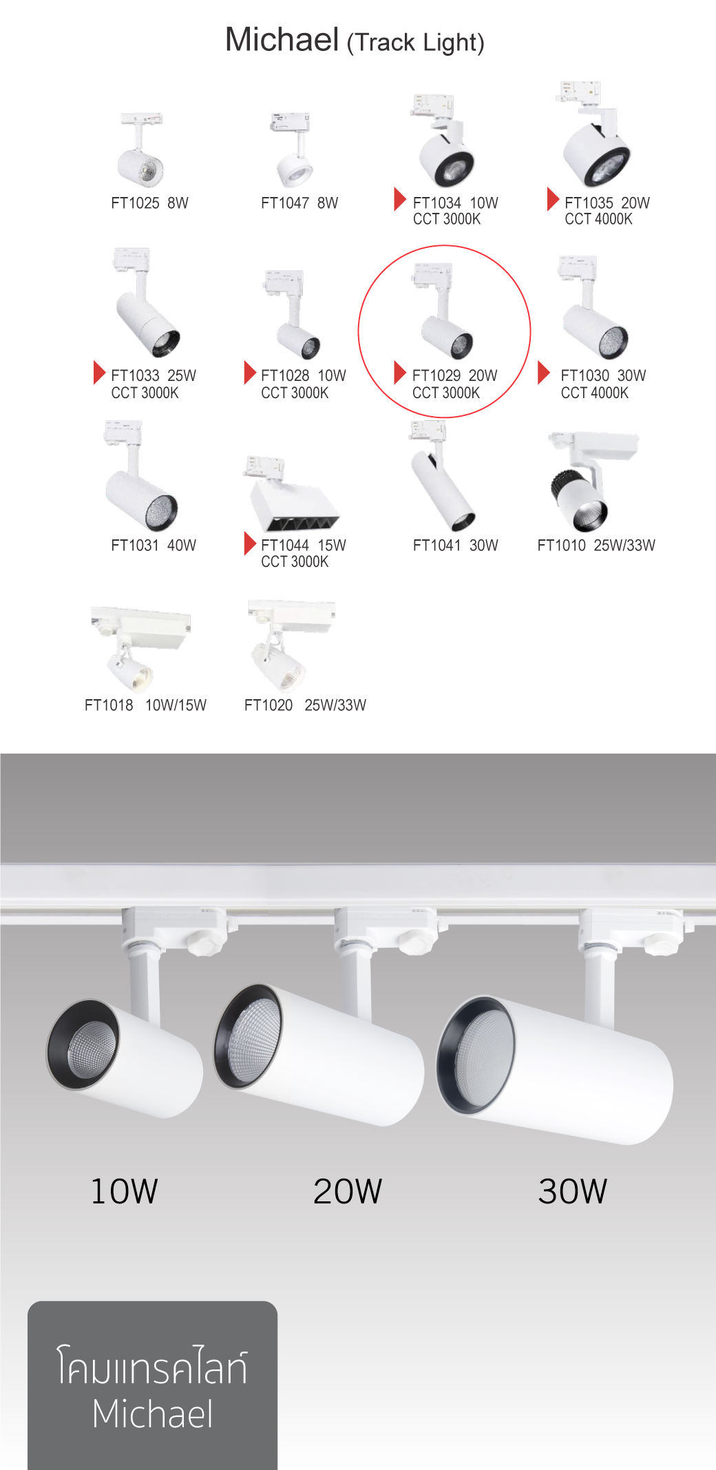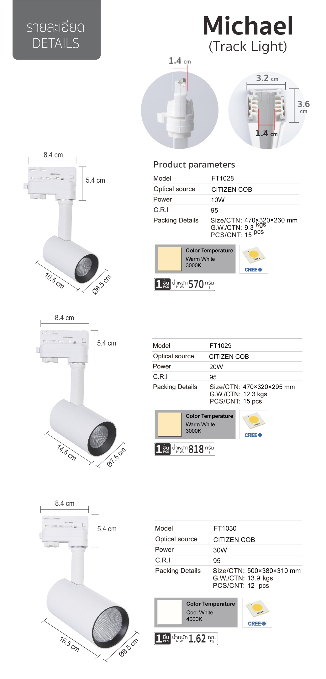 รายละเอียดโคมแทรคไลท์ LED (Specification)