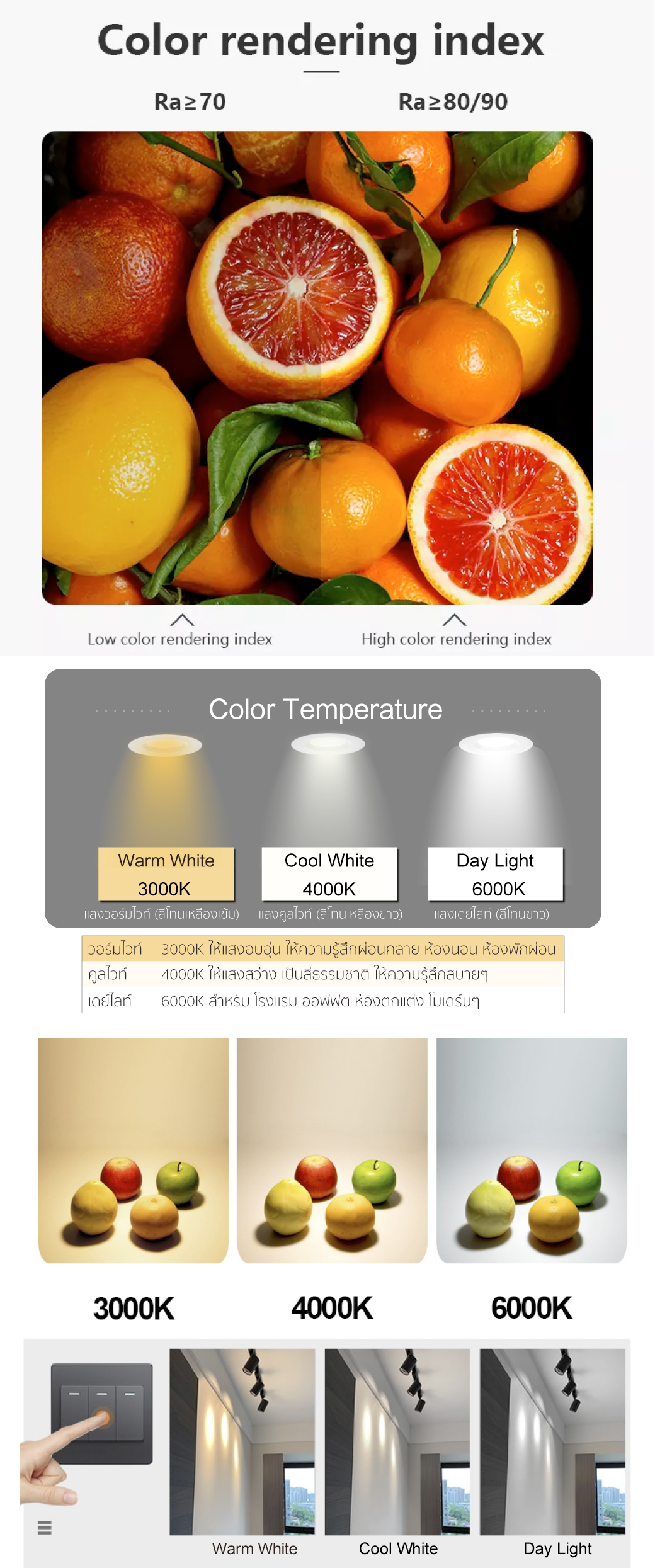 | ค่าคุณภูมิของสี (CCT) | 3000K |