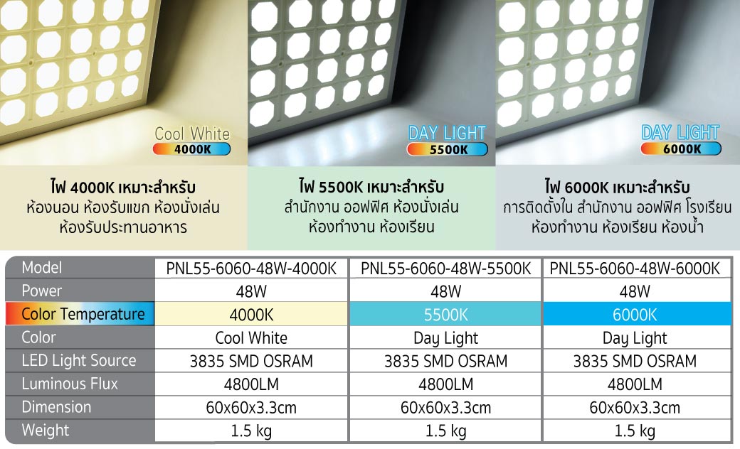 LED พาแนลไลท์ฝังฝ้า รุ่น PNL55-6060-48W-6000K