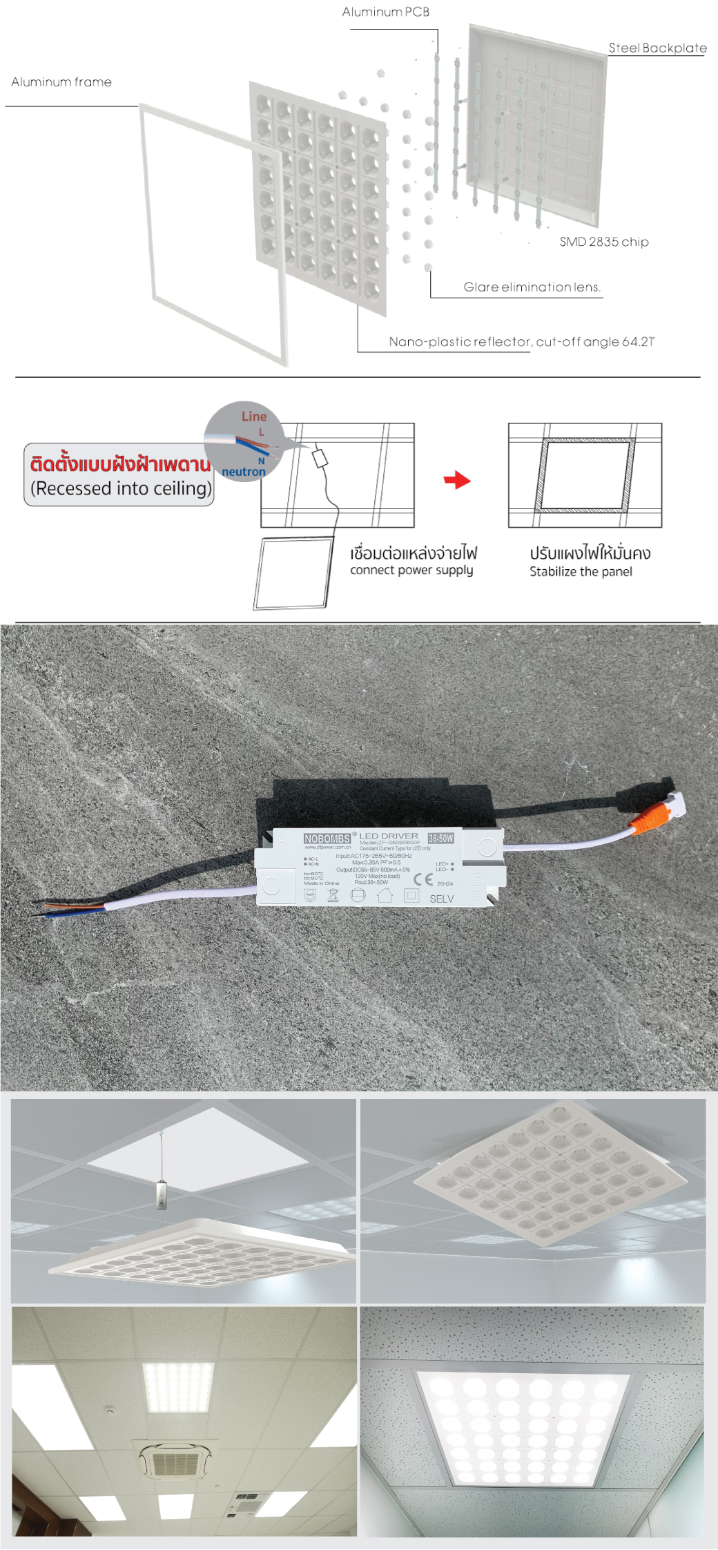 ไฟพาแนลไลท์ฝังฝ้า LED ให้แสงสว่างที่สบายตา ปลอดภัยต่อสายตา เรียบเนียนไปกับเพดานเมื่อติดตั้ง ดูแล้วทันสมัย สำหรับโคมไฟที่ต้องใช้งานในออฟฟิศ สำนักงาน ห้องเรียน ห้องประชุม
