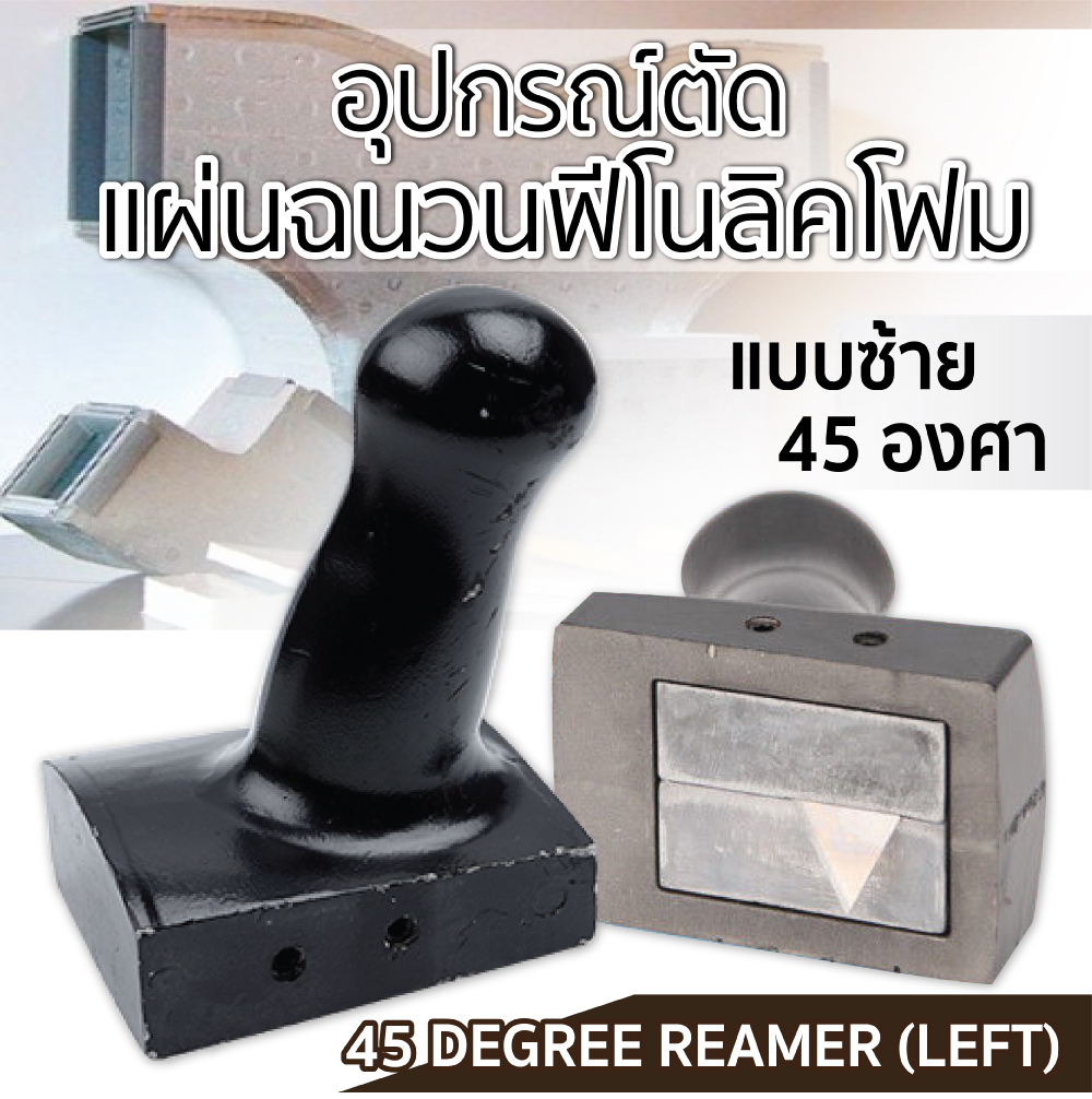 • อุปกรณ์ตัดแผ่นฉนวนฟีโนลิคโฟม(แบบซ้าย 45 องศา) ใช้ตัดแผ่นฉนวนฟีโนลิคโฟม สำหรับแบบซ้าย 45 องศา