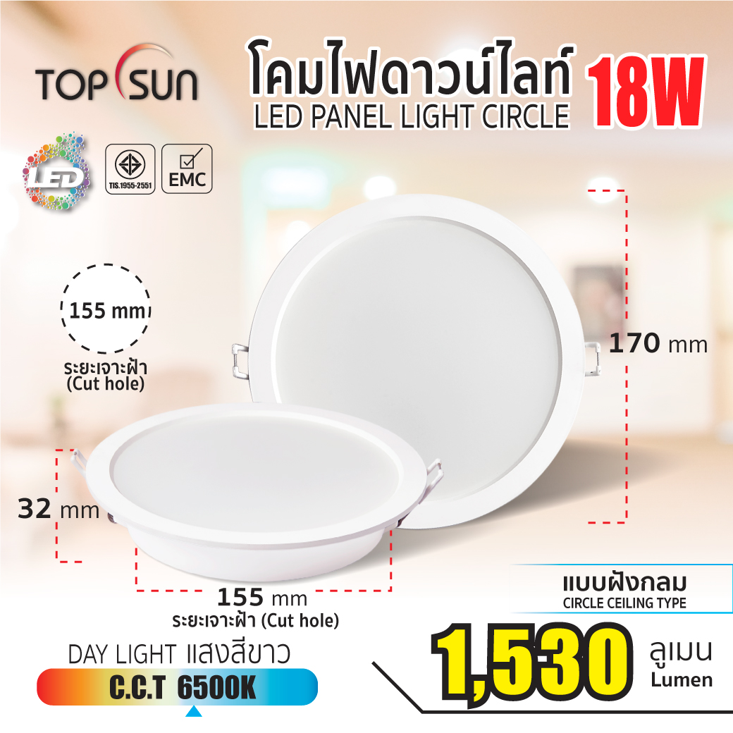 • ดาวน์ไลท์พาแนล ฝังฝ้า Topsun ไม่มีสารปรอท ไม่มียูวี