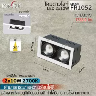 โคมดาวน์ไลท์ 2x15W ฝังแบบเหลี่ยม รุ่น FR1066 TOPSUN